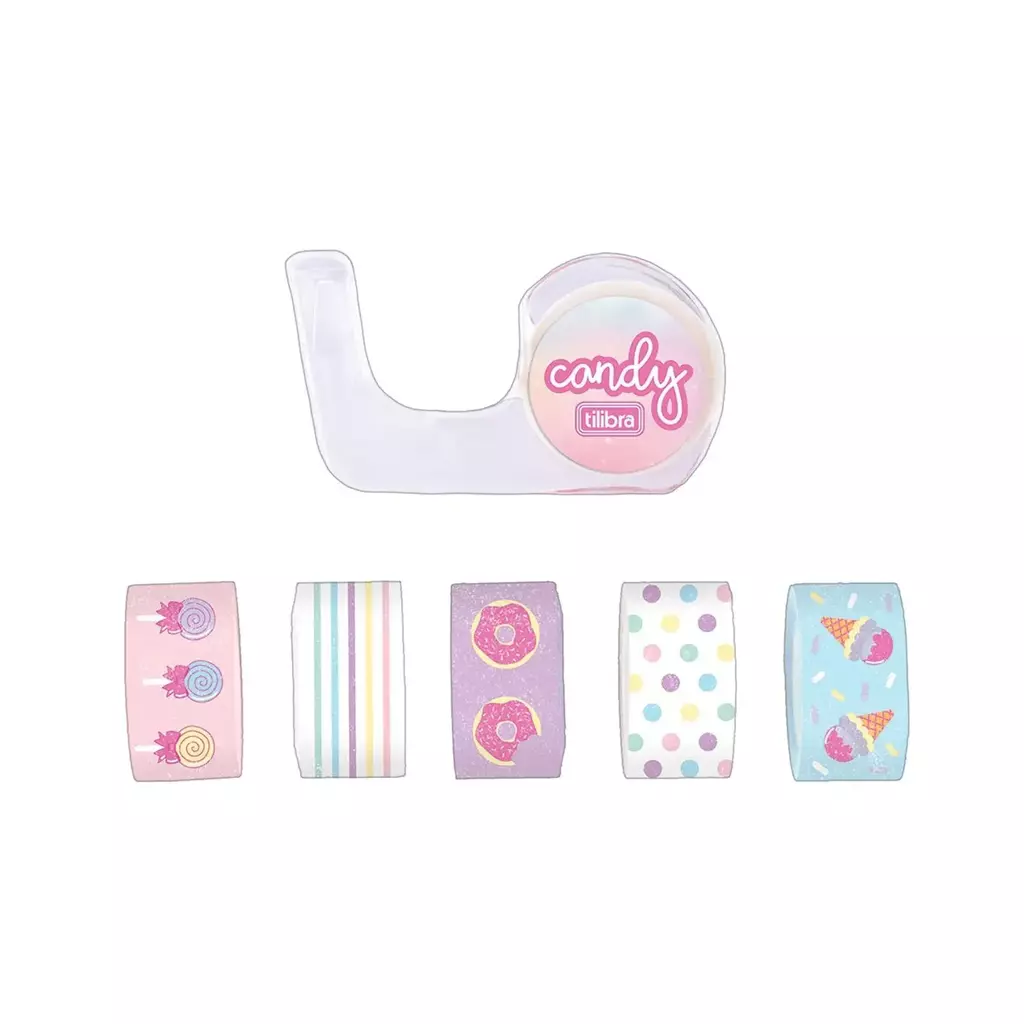 Mini Fita Adesiva Washi Tape 12mmX3m Candy - Blister com 5 + Dispenser